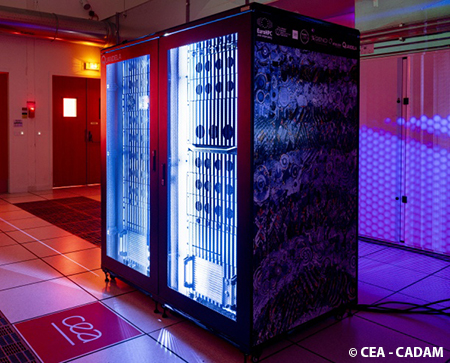 Le TGCC offre un environnement HPC propice au calcul hybride classique-quantique et aux simulations de grande échelle. Un système Qaptiva™ fourni par EVIDEN (Bull) assure la connexion entre les QPUs et le HPC, et offre également des capacités d’émulation des QPUs.